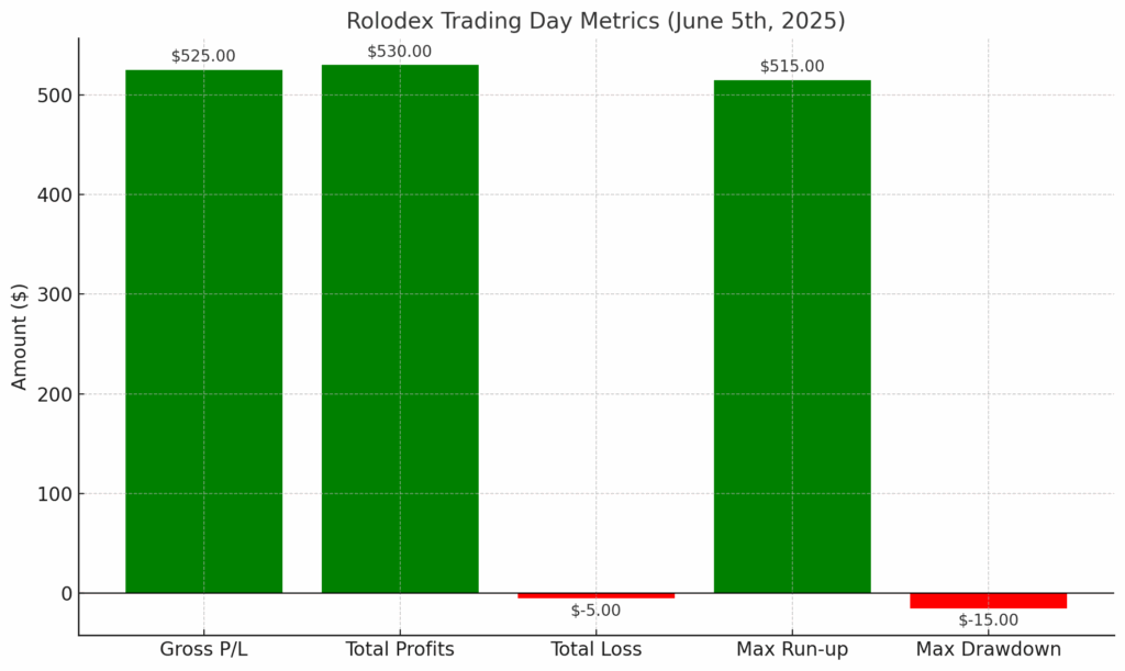 | 9. Max Run-up – $515.00 | 9. Max Drawdown – $(15.00) |
