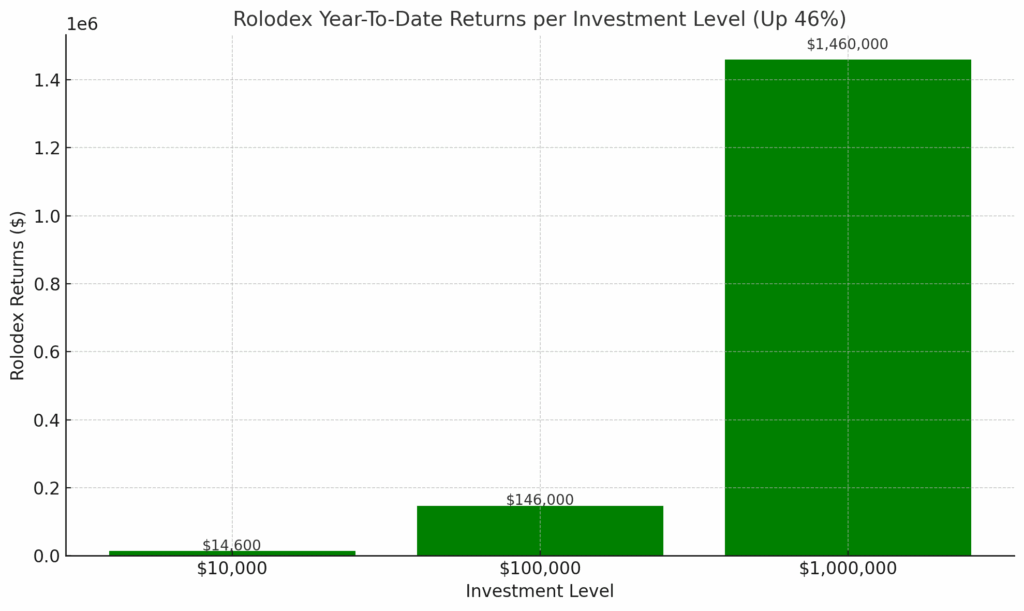 Rolodex Chart Year-To-Date | Rolodex Returns per $10,000 Investment A | Rolodex Returns per $100,000 Investment B | Rolodex Returns per $1,000,000 Investment C |